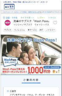 グルメやショッピング、レジャー施設、国内・海外旅行などがカードの提示・利用で割引が受けられる、セゾンカードの優待サイトに「Wash Pass」が掲載されました。